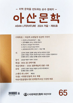 Á¦65È£´Â ¸ÕÀú ¡ã±âȹƯÁýÀ¸·Î ¡®¾Æ»êÀÇ °í°¹±æ°ú Àι®ÇÐ À̾߱⡯¸¦ ´Ù·ð´Ù. ¡â¾Æ»êÀÇ °í°¹±æ µÑ·¯º¸±â(Ⱥ¸) ¡â¹®ÇÐÀÛǰ¿¡ ³ªÅ¸³ °í°¹±æ ÀÌ¾ß±â ¡â¾Æ»êÀÇ °í°¹±æ°ú ¿ª»ç ÀÌ¾ß±â ¡â¾Æ»êÀÇ °í°¹±æ°ú Àü¼³ À̾߱⠡â°í°¹±æ¿¡ ¾ôÈù Ãß¾ï À̾߱â(ȸ¿ø ÀÛǰ)°¡ ¼ö·ÏµÅ ÀÖ´Ù.