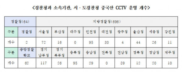 ½Ã¤ýµµ°æÂûû Áß Áß±¹»ê CCTV°¡ °¡Àå ¸¹ÀÌ ¼³Ä¡µÈ °÷Àº °æ±â³²ºÎ°æÂûûÀ¸·Î ÃÑ 117°³°¡ ¼³Ä¡µÈ °ÍÀ¸·Î ³ªÅ¸³µÀ¸¸ç, °æÂûû º»Ã»Àº 2°³°¡ ÀÖ´Â °ÍÀ¸·Î È®ÀεƴÙ.