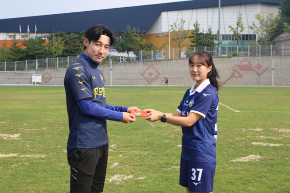 ´ëȸ Àü³¯(10ÀÏ)±îÁö ±¸½½¶¡À» È긮¸ç ´ëȸ Áغñ¸¦ ¸¶Ä£ ¾Æ¿ïFCÀ§¹ÎÀÇ ¼±ÀüÀ» À§ÇØ ÇÁ·Î ¼±¼öµéµµ ³ª¼¹´Ù. ÁÖÀå ¹Ú¼¼Á÷ ¼±¼ö°¡ ¼±¼ö´ÜÀ» ´ëÇ¥ÇØ ÄýÄÅ ÁÖÀå Á¤´ÙÀÎ ¼±¼ö¿¡°Ô ÁÖÀå ¿ÏÀåÀ» Á÷Á¢ ¼±¹°Çß°í ÀÀ¿øÀÇ ¸Þ½ÃÁö¸¦ Àü´ÞÇÏ¸ç »ç±â¸¦ º¹ µ¸¾Ò´Ù.