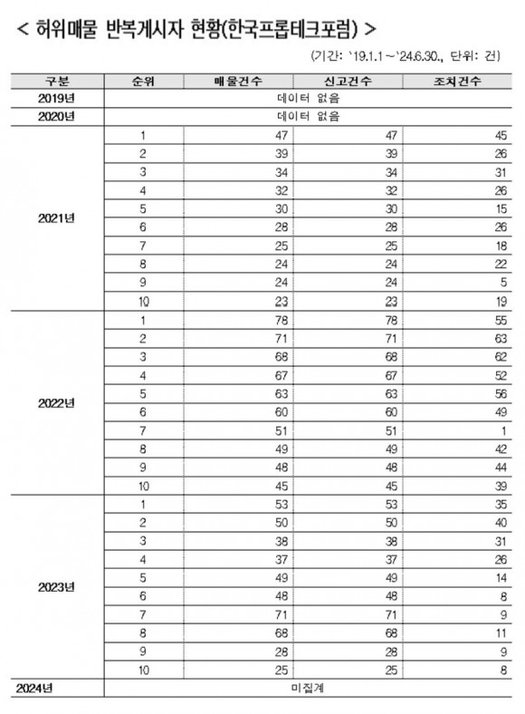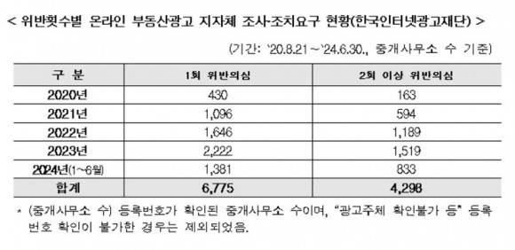ƯÈ÷, ½ÇÁ¦·Ð Á¸ÀçÇÏÁö ¾Ê´Â ¹Ì³¢ ¸Å¹°°ú ÇãÀ§?°úÀå ±¤°í µî ¹ý À§¹Ý ¸Å¹°À» ¹Ýº¹ÀûÀ¸·Î È«º¸ÇØ ¡®2ȸ ÀÌ»ó À§¹ÝÀǽɡ¯ °ÇÀ¸·Î ÁöÀÚü¿¡ Å뺸µÇ´Â °ÇÀº 2021³â 594°Ç, 2022³â 1õ189°Ç, Áö³ÇØ 1õ519°ÇÀ¸·Î »ó½Â¼¼°¡ °¡ÆÄ¸£´Ù.