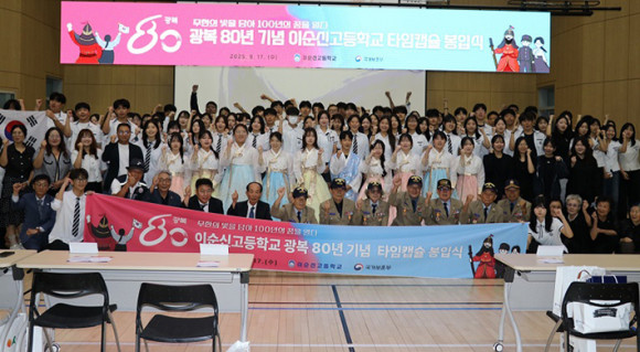 ¾Æ»ê À̼ø½Å°íµîÇб³(±³Àå ±èűÕ)´Â 9¿ù 17ÀÏ, ±¹°¡º¸ÈƺÎ(Àå°ü ±Ç¿ÀÀ») ±¤º¹ 80³â ±â³ä»ç¾÷ÀÎ ¡¸±¤º¹ 100ÁÖ³âÀ» ÇâÇÑ Å¸ÀÓĸ½¶¡¹ºÀÀÔ½ÄÀ» ±³³» ´ë°´ç¿¡¼ ÁøÇàÇß´Ù.