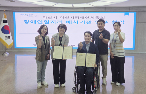 ¾Æ»ê½Ã(½ÃÀå ¿À¼¼Çö)´Â 22ÀÏ ½Ãû »óȲ½Ç¿¡¼ ¾Æ»ê½ÃÀå¾ÖÀÎüÀ°È¸¿Í Àå¾ÖÀÎ °í¿ë Ȱ¼ºÈ¸¦ À§ÇÑ Àå¾ÖÀÎÀÎÀÏÀÚ¸® ¾÷¹«Çù¾àÀ» ü°áÇß´Ù.