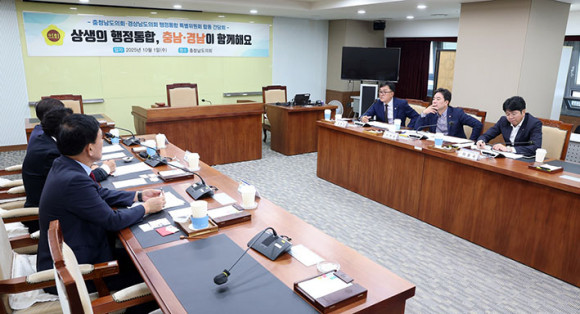 Ãæ³²µµÀÇȸ ¡®Ãæ³²´ëÀü ÇàÁ¤ÅëÇÕ Æ¯º°À§¿øÈ¸(À§¿øÀå ½Å¿µÈ£)¡¯´Â 1ÀÏ Ãæ³²µµÀÇȸ ȸÀǽǿ¡¼ °æ³²µµÀÇȸ ¡®°æ³²ºÎ»ê ÇàÁ¤ÅëÇÕ Æ¯º°À§¿øÈ¸(À§¿øÀå Çã¿ëº¹)¡¯¿Í ÇÕµ¿ °£´ãȸ¸¦ °³ÃÖÇß´Ù.
