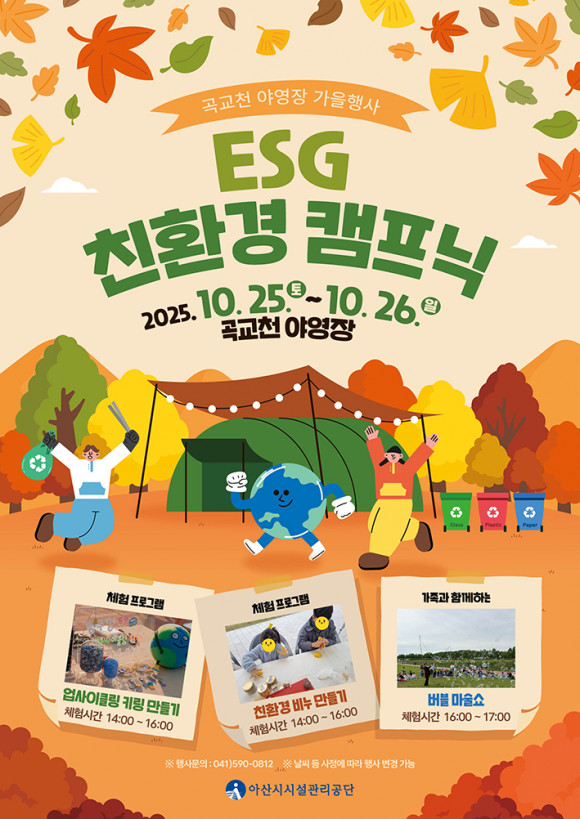 ¾Æ»ê½Ã½Ã¼³°ü¸®°ø´Ü(ÀÌ»çÀå ±èÈ¿¼·, ÀÌÇÏ °ø´Ü)Àº ¿À´Â 10¿ù 25ÀϺÎÅÍ 26ÀϱîÁö ÀÌÆ²°£ °î±³Ãµ ¾ß¿µÀå¿¡¼ ¡®ESG ģȯ°æ Ä·ÇÁ´Ð¡¯ Çà»ç¸¦ °³ÃÖÇÑ´Ù.