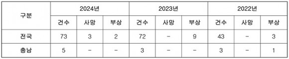 µµ³»¿¡¼´Â ¡â2022³â 3°Ç ¡â2023³â 3°Ç ¡â2024³â 5°ÇÀÌ ¹ß»ýÇϰí, ¿ÃÇØ¿¡´Â ¡â2¿ù 7ÀÏ ´çÁø ¼Û»ê¸é ¡â6¿ù 29ÀÏ ¼»ê ´ë»êÀ¾ ¡â7¿ù 21ÀÏ Ãµ¾È µ¿³²±¸¿¡¼ 3°ÇÀÇ Àü±âÂ÷ ÈÀç°¡ ¹ß»ý, Â÷·® Àü¼Ò µîÀÇ ÇÇÇØ¸¦ ÀÔ¾ú´Ù.