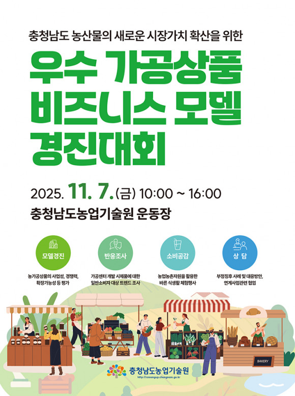Ãæ³²µµ ³ó¾÷±â¼ú¿øÀº ¿À´Â 11¿ù 7ÀÏ ³ó°¡°ø°æ¿µÃ¼¿Í Àü¹®°¡, ÀÏ¹Ý ¼ÒºñÀÚ µî 300¿© ¸íÀÌ Âü¼®ÇÑ °¡¿îµ¥ ¡®2025³â ¿ì¼ö °¡°ø»óǰ ºñÁî´Ï½º ¸ðµ¨ °æÁø´ëȸ¡¯¸¦ °³ÃÖÇÑ´Ù°í 30ÀÏ ¹àÇû´Ù.