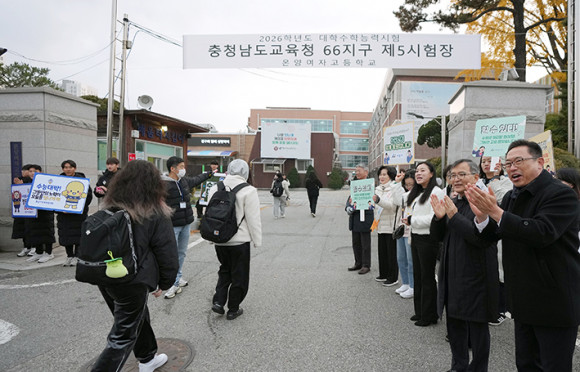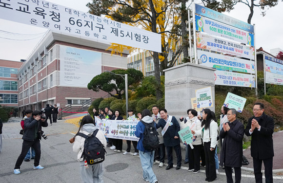 ¾Æ»ê½ÃÀÇȸ(ÀÇÀå È«¼ºÇ¥)´Â 11¿ù 13ÀÏ(¸ñ) 2026Çг⵵ ´ëÇмöÇдɷ½ÃÇèÀÏÀ» ¸Â¾Æ ¿Â¾ç¿©ÀÚ°íµîÇб³¸¦ ¹æ¹®ÇØ ¼öÇè»ýµéÀ» °Ý·ÁÇϰí ÀÀ¿øÀÇ ¸Þ½ÃÁö¸¦ ÀüÇß´Ù.