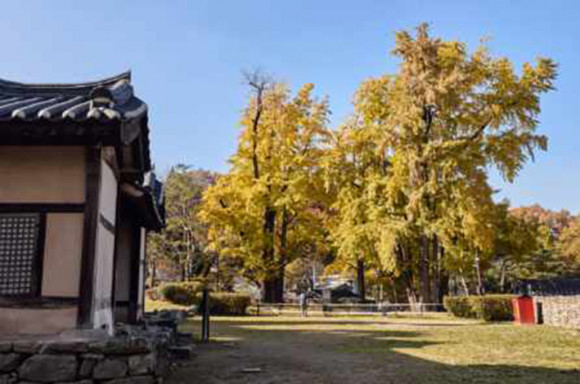 °¡À»ºûÀÌ ¿Ï¿¬ÇØÁö¸é ¾Æ»ê ¹è¹æÀ¾¿¡ ÀÚ¸®ÇÑ ¸Í¾¾Çà´ÜÀº ¿ÂÅë Ȳ±ÝºûÀ¸·Î ¹°µç´Ù. ¼¼Á¾´ë¿Õ ´ë ÅÂÆò¼º´ë¸¦ À̲ö Á¶¼± Ãʱ⠸íÀç»ó, °íºÒ ¸Í»ç¼º(ØëÞÖá¤, 1360~1438)°ú ±×ÀÇ ¾Æ¹öÁö µ¿Æ÷°ø ¸ÍÈñµµ(ØëýñÔ³, 1337~?)°¡ ±â°ÅÇϸç ÈÄÇÐÀ» °¡¸£ÃÆ´ø °÷ÀÌ´Ù.