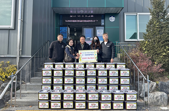 SJG¾Æ¼¾ÅØ(ÁÖ)(´ëÇ¥ ¹Ú»ó±æ) ÀÓÁ÷¿øµéÀÌ Á÷Á¢ ´ã±Ù 10kg ±èÀå±èÄ¡ 80»óÀÚ¸¦ 17ÀÏ ¾Æ»ê½Ã À½ºÀ¸é ÇູŰ¿òÃßÁø´Ü(°øµ¿´ÜÀå ÀÌÁ¤¼º¡¤ÀÌÀÇõ)¿¡ ÈÄ¿øÇß´Ù.