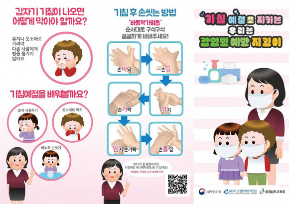 ƯÈ÷, ¡®±âħ ¿¹ÀýÀ» ÁöŰ´Â ¿ì¸®´Â °¨¿°º´ ¿¹¹æ ÁöÅ´ÀÌ¡¯¶ó´Â Á¦¸ñÀÇ Àü´ÜÁö´Â Çлý ´«³ôÀÌ¿¡ ¸ÂÃá ±×¸²°ú °£´ÜÇÑ ¹®±¸·Î ±¸¼ºµÇ¾î ÀÖÀ¸¸ç, ±³½Ç¡¤º¸°Ç½Ç¡¤±Þ½Ä½Ç µî Çб³ ³» ´Ù¾çÇÑ °ø°£¿¡ ºñÄ¡µÇ¾î ÇлýµéÀÇ ÀÚÀ²Àû °¨¿°º´ ¿¹¹æ ½ÇõÀ» À¯µµÇÒ ¿¹Á¤ÀÌ´Ù.