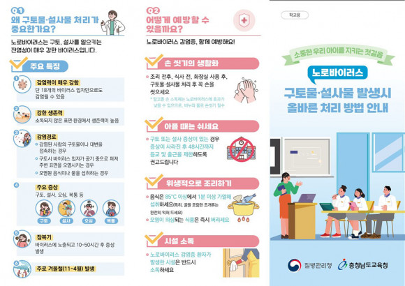 ¶ÇÇÑ, °Ü¿ïö À¯ÇàÀÌ ÀæÀº ³ë·Î¹ÙÀÌ·¯½º µî ½ÄÁßµ¶¼º °¨¿°º´¿¡ ´ëºñÇØ ¡®³ë·Î¹ÙÀÌ·¯½º ±¸Åä¹°(¼³»ç¹°) ¹ß»ý ½Ã ¿Ã¹Ù¸¥ 󸮹æ¹ý ¾È³» Àü´ÜÁö¡¯µµ ÇÔ²² Á¦ÀÛÇÏ¿© °¢±Þ Çб³¿¡ ¹èÆ÷Çß´Ù.