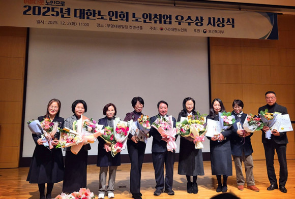 ´ëÇѳëÀÎȸ ¾Æ»ê½ÃÁöȸ(ÁöȸÀå ¿ÀÄ¡¼®)´Â 2025³â 12¿ù 2ÀÏ(È) ¼¿ï Áß±¸ ºÎ¿µÅÂÆòºôµù ÄÁº¥¼ÇȦ¿¡¼ ´ëÇѳëÀÎȸ(Áß¾ÓȸÀå ÀÌÁß±Ù)°¡ ÁÖÃÖÇÏ°í º¸°Çº¹ÁöºÎ°¡ ÈÄ¿øÇÏ´Â ¡®2025³â ³ëÀÎÃë¾÷ ¿ì¼ö»ó ½Ã»ó½Ä¡¯¿¡¼ ¹Î°£ÀÏÀÚ¸® Ãë¾÷ ¾Ë¼±ÀÇ ¼º°ú ±Ø´ëÈ·Î ¾Æ»ê½ÃÁöȸ °¹Î°æ Ãë¾÷Áö¿ø¼¾ÅÍÀåÀÌ ¡°Ãë¾÷¿Õ¡±À¸·Î ¼±Á¤µÇ¾î ´ëÇѳëÀÎȸ»óÀ» ¼ö»óÇß´Ù°í ¹àÇû´Ù.