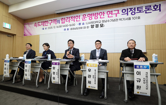 Ãæ³²µµÀÇȸ´Â 16ÀÏ ³ª»ç·¿´ëÇб³ Á¤³²¼ö±â³ä°ü ¹Ú±â¼È¦¿¡¼ ¡®¼ÓµµÁ¦Çѱ¸¿ªÀÇ ÇÕ¸®ÀûÀÎ ¿î¿µ ¹æ¾È ¿¬±¸¡¯¸¦ ÁÖÁ¦·Î ÀÇÁ¤Åä·Ðȸ¸¦ ¿¾ú´Ù.