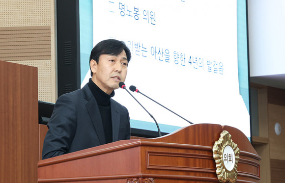 ¾Æ»ê½ÃÀÇȸ ¸í³ëºÀ ÀÇ¿øÀº Áö³ 11ÀÏ ¿¸° Á¦264ȸ ¾Æ»ê½ÃÀÇȸ ÀÓ½Ãȸ Á¦2Â÷ º»È¸ÀÇ¿¡¼ ¡®´õ ½Å·Ú¹Þ´Â ¾Æ»êÀ» ÇâÇÑ 4³âÀÇ ¹ß°ÉÀ½¡¯À» ÁÖÁ¦·Î 5ºÐ ÀÚÀ¯¹ß¾ðÀ» ÁøÇàÇß´Ù.