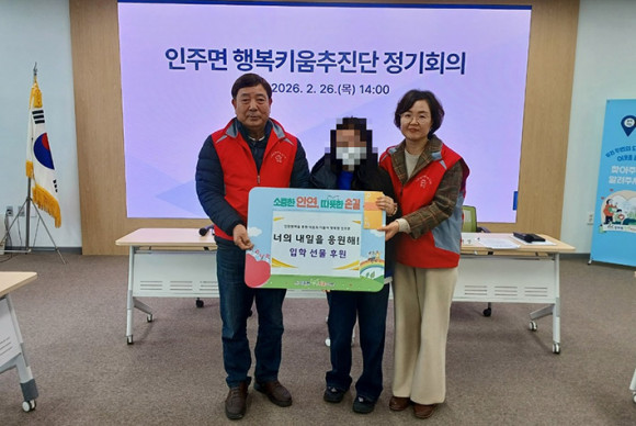 ÀÎÁÖ¸é ÇູŰ¿òÃßÁø´Ü(°øµ¿´ÜÀå ¼Û°æ¼÷, À̱ÔÀÏ)Àº Áö³ 26ÀÏ 2¿ù Á¤±âȸÀÇ¿¡¼ °ü³» Àú¼ÒµæÃþ ÃÊ¡¤Áß¡¤°í ÀÔÇлý 8¸íÀ» ´ë»óÀ¸·Î '³ÊÀÇ ³»ÀÏÀ» ÀÀ¿øÇØ!' »ç¾÷À» ½Ç½ÃÇß´Ù.