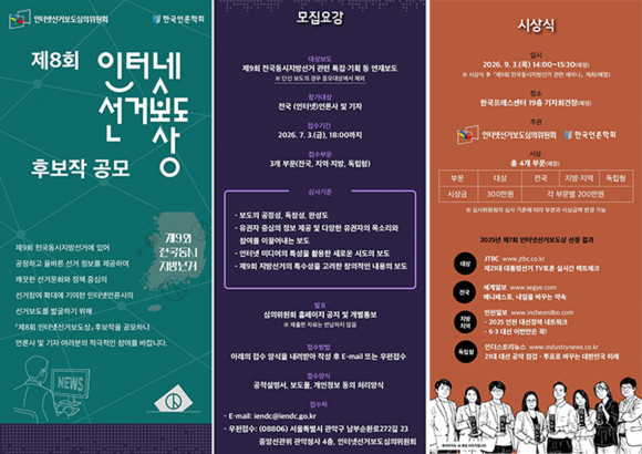 ÀÀ¸ð ÀÚ°ÝÀº ¾ð·Ð»ç ¹× ±âÀÚ°¡ ÀÛ¼ºÇÑ ÀÎÅÍ³Ý ¼±°Åº¸µµ(¹æ¼Û¡¤½Å¹®»çÀÇ ¿Â¶óÀÎ ±â»ç Æ÷ÇÔ)À̸ç, Á¢¼ö ±âÇÑÀº 2026³â 7¿ù 3ÀÏ(±Ý) 18½Ã±îÁöÀ̰í, Á¢¼ö ¹æ¹ý°ú Á¦Ãâ ¼·ù µî ¼¼ºÎ »çÇ×Àº ÀÎÅͳݽÉÀÇÀ§ ȨÆäÀÌÁö¸¦ ÅëÇØ È®ÀÎÇÒ ¼ö ÀÖ´Ù.