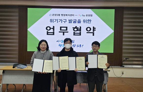 ¾Æ»ê½Ã ¿Â¾ç3µ¿ ÇàÁ¤º¹Áö¼¾ÅÍ(µ¿Àå Àӽ±Ù)´Â hy ¿Â¾çÁ¡°ú º¹Áö »ç°¢Áö´ë¿¡ ³õÀÎ À§±â°¡±¸¸¦ Á¶±â¿¡ ¹ß±¼ÇÏ°í ¸ÂÃãÇü º¹Áö¼ºñ½º¸¦ ¿¬°èÇϱâ À§ÇÑ ¾÷¹«Çù¾àÀ» ü°áÇß´Ù.