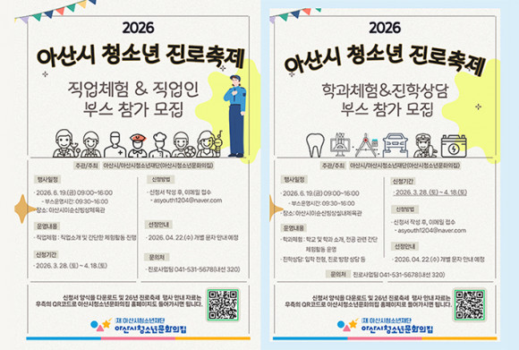 ¾Æ»ê½Ã´Â û¼Ò³âµéÀÇ Áø·Î Ž»ö°ú Á÷¾÷ ÀÌÇØ¸¦ µ½±â À§ÇÑ ¡¸2026³â ¾Æ»ê½Ã û¼Ò³â Áø·ÎÃàÁ¦ ¡®³»:ÀÏÀ» ±×¸®´Ù¡¯¡¹¸¦ ¿À´Â 6¿ù 19ÀÏ °³ÃÖÇϰí, ÃàÁ¦ ¿î¿µ¿¡ Âü¿©ÇÒ ´Ù¾çÇÑ Ã¼Çè ¹× »ó´ã ºÎ½º¸¦ ¸ðÁýÇÑ´Ù°í ¹àÇû´Ù.