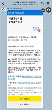 | | ¡è¡è Áö¹æ¼¼ ¾Ë¸²ÅåÀ» ÅëÇÑ Ãëµæ¼¼ °¨¸é Àǹ« Áؼö»çÇ× ¾È³»¹® <»çÁø Á¦°ø=¾Æ»ê½Ãû> | ¨Ï (ÁÖ)¿Â¾ç½Å¹®»ç | ¾Æ»ê½Ã´Â Ãëµæ¼¼ °¨¸é ÇýÅÃÀ» ¹ÞÀº ³³¼¼ÀÚ°¡ Áؼö»çÇ× ¹Ì¼÷Áö·Î ÀÎÇØ °¡»ê¼¼¸¦ ºÎ´ãÇÏ´Â »ç·Ê¸¦ ¹æÁöÇϰíÀÚ ¡®Ãëµæ¼¼ °¨¸é Àǹ« Áؼö»çÇ× Ä«Ä«¿ÀÅå ¾Ë¸²Åå ¼ºñ½º¡¯¸¦ ¿î¿µÇϰí ÀÖ´Ù.