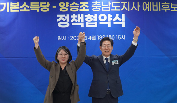 ¾ç½ÂÁ¶ Èĺ¸¿Í ¿ëÇýÀÎ ´ëÇ¥´Â À̳¯ Á¤Ã¥Çù¾à½ÄÀ» °®°í, ÀÌÀç¸í Á¤ºÎÀÇ ÇÙ½É ±¹Á¤ öÇÐÀÎ ¡®±âº»»çȸ¡¯¸¦ Ãæ³²¿¡¼ ¼±µµÀûÀ¸·Î ¸ðµ¨¸µÇϱâ À§ÇÑ 4´ë ÇÙ½É Á¤Ã¥ °øµ¿ ÃßÁøÀ» ¾à¼ÓÇß´Ù.