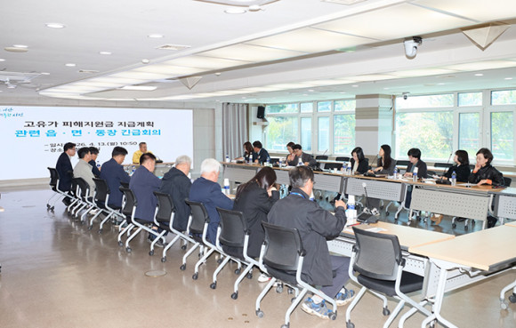 ¾Æ»ê½Ã´Â 13ÀÏ ½Ãû »óȲ½Ç¿¡¼ Á¤ºÎ°¡ ÃßÁøÇÏ´Â ¡®°íÀ¯°¡ ÇÇÇØÁö¿ø±Ý¡¯ÀÇ ½Å¼ÓÇϰí Á¤È®ÇÑ Áö±ÞÀ» À§ÇÑ À¾¡¤¸é¡¤µ¿Àå ±ä±ÞȸÀǸ¦ °³ÃÖÇß´Ù.