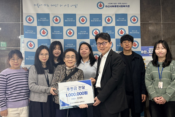 ¾Æ»ê¼ºÎÁ¾ÇÕ»çȸº¹Áö°ü(°üÀå ±Ç¹ü)Àº 4¿ù 17ÀÏ, Áö¿ª ¾î¸£½Å º¹Áö Çâ»óÀ» À§ÇØ Á¤Àç¼÷ ÈÄ¿øÀڷκÎÅÍ 100¸¸¿øÀÇ ÈÄ¿ø±ÝÀ» Àü´Þ¹Þ¾Ò´Ù.