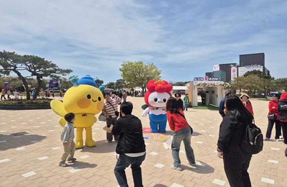 žȱ¹Á¦¿ø¿¹Ä¡À¯¹Ú¶÷ȸÀå ÀÔ±¸¿¡ ¸¶½ºÄÚÆ® ¡®ÇØ¿ÂÀÌ¡¯¿Í ¡®¼Ò¹Ì¡¯°¡ µîÀåÇØ °ü¶÷°´°ú Àλ縦 ³ª´©°í »çÁø ÃÔ¿µÀ» ÁøÇàÇÏ¸ç ¹æ¹®°´µé¿¡°Ô ÈÁ¦°¡ µÇ°í ÀÖ´Ù.