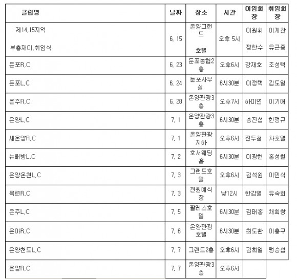ºÀ»çÀÇ ÀÌ»óÀ» ½ÇõÇÏ´Â °ÍÀ» Àå·ÁÇÒ ¸ñÀûÀ¸·Î ¹¶ÃÄÁø »ç¾÷ ¹× Àü¹®Á÷¾÷ÀεéÀÇ ¹ü¼¼°èÀûÀÎ ºÀ»ç´ÜüÀÎ ±¹Á¦·ÎŸ¸® 3620Áö±¸ ¾Æ»êÁö¿ª·ÎŸ¸®Å¬·´ ȸÀå ÀÌ‧ÃëÀӽİú¹Î°£ ºÀ»ç´Üü·Î ½Ã¹Î¤ý»çȸ¤ý»ó¾÷¤ýµµ´öÀÇ ¹ø¿µ¿¡ ´ëÇÑ Àû±ØÀüÀÎ °ü½ÉÀ» ÃËÁøÇϱâ À§ÇØ ±¸¼ºµÈ ±¹Á¦¶óÀ̿½º Á¦14,15Áö¿ª ȸÀå ÀÌÃëÀÓ½ÄÀÌ °ÅÇàµÈ´Ù.