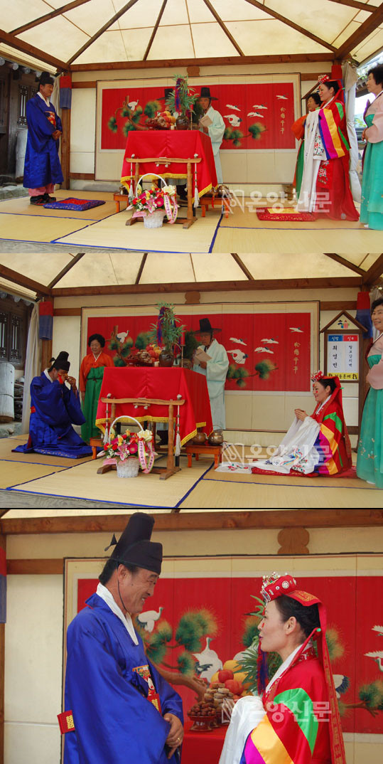 À̳¯ ÀüÅëÈ¥·Ê½Ä¿¡¼´Â ÃÖ¿µ¹Î¾¾¿Í ¸ù°ñÃâ½ÅÀÇ ¡®Â©º¸¡¯°£Ä¡¸Æ¾¾°¡ ¹é³â°¡¾àÀ» ¸Î¾ú´Ù. ±¹°æÀ» ³Ñ´Â »ç¶ûÀ» Ű¿ö¿Â ÀÌµé ºÎºÎ´Â ¼ö³â ° »ç½ÇÈ¥ °ü°è·Î¼, À̹ø¿¡ Çѱ¹ ÀüÅëÈ¥·Ê·Î ºÎºÎÀÇ ¿¬À» ¸ÎÀ¸¸é¼ ÀλýÀÇ »õ·Î¿î Ãâ¹ßÀ» ÇÏ°Ô µÆ´Ù.