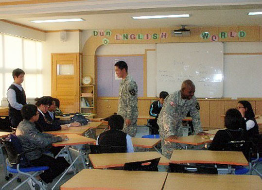 | | ¡è¡è ÇлýµéÀÌ ¹Ì±º°ú ¿µ¾î·Î ´ëÈÇϰí ÀÖ´Ù. | ¨Ï ¿Â¾ç½Å¹® | | µÐÆ÷ÁßÇб³(±³Àå Á¤´ë¼ö)´Â Áö³ 10¿ù 13ÀϺÎÅÍ ¸ÅÁÖ ¼ö¿äÀÏ Çб³ ±Ùó¿¡ ÀÖ´Â ÆòÅà ÇèÇÁ¸®½º ¹Ì±º±âÁö( Camp Humpreys) ±ºÀεé°ú ÇÔ²² Àç¹ÌÀÖ´Â »ýȰ ¿µ¾î¹Ý ¼ö¾÷À» ½ÃÀÛÇß´Ù.