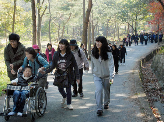 ¿ëºÀ»ê ÀÔ±¸ºÎÅÍ ½ÃÀÛµÈ »êÇàÀº ±³Á÷¿ø°ú ÇлýµéÀÌ »ï»ï¿À¿À Àå¾Ö¿ìÀÇ ¼ÕÀ» Àâ°Å³ª ÈÙü¾î¸¦ º¸Á¶ÇÏ¸é¼ ¡®¾Æ¸§´Ù¿î µ¿Ç࡯ÀÌ ½ÃÀ۵ƴÙ. ¶Ç ³¸¼± ´ëÇлý ¾ð´Ï ¿ÀºüµéÀÌ ´Ù°¡¼ÀÚ ÀÀ¼®À» ºÎ¸®±âµµÇÏ°í ¿½ÉÈ÷ °È´Â ¸ð½Àµµ º¸¿´´Ù.