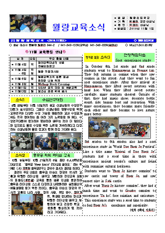 ¿ù¶ûÃʵîÇб³(±³Àå ½ÉÀå±Ù)°¡ ¿ù 1ȸ ¹ßÇàÇÏ´Â Çб³ ¼Ò½ÄÁö¿¡ ÇлýÀÌ ¹ø¿ªÇÑ ¿µ¾î±â»ç¸¦ °ÔÀçÇØ ÈÁ¦°¡ µÇ°í ÀÖ´Ù.