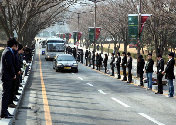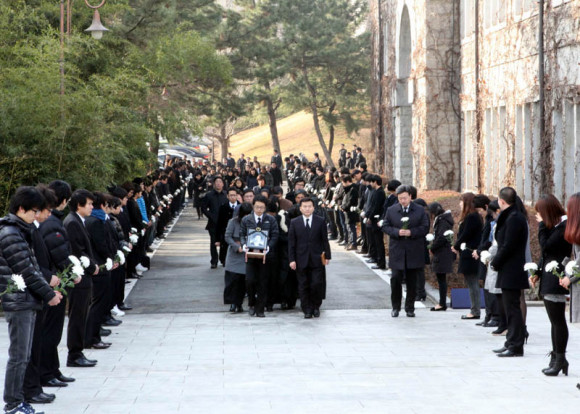 ¿À±³¼öÀÇ Àå·Ê Çà·ÄÀÌ Çб³¿Í ¿¬±¸½ÇÀ» µ¹°í ¹ßÀÎ ¿¹¹è¿¡¼ Àλ縻À» ÇÏ´ø °Àϱ¸ ÃÑÀåµµ ¿ï¸ÔÀÌ¸ç ³¡³» ¸»À» ÀÕÁö ¸øÇÏ°í ´«¹°À» Èê·Á Àå·Ê½ÄÀåÀ» ´õ¿í ¼÷¿¬ÇÏ°Ô Çß´Ù.