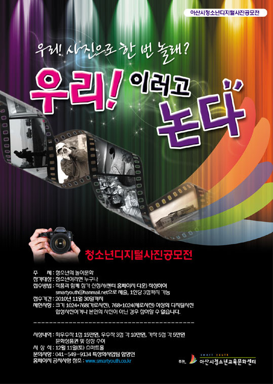 ¾Æ»ê½Ãû¼Ò³â±³À°¹®È¼¾ÅÍ´Â µðÁöÅÐ ½Ã´ë¿¡ ¸ÂÃç ¾Æ»ê½Ã û¼Ò³âµéÀÌ ¹Ìµð¾î¸¦ Áñ±â°í, ¹Ìµð¾î·Î ¼ÒÅëÇÒ ¼ö ÀÖµµ·Ï û¼Ò³âÀÇ ³îÀÌ ¹®È¸¦ ÁÖÁ¦·Î û¼Ò³â µðÁöÅÐ »çÁø°ø¸ðÀüÀ» °³ÃÖÇÑ´Ù.