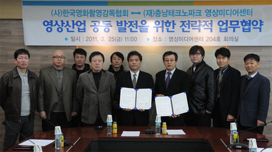 Ãæ³²Å×Å©³ëÆÄÅ©(¿øÀå Àå¿øÃ¶)´Â 2¿ù 25ÀÏ ¿ÀÀü 10½Ã ¿µ»ó¹Ìµð¾î¼¾ÅÍ ½Ã»ç½Ç¿¡¼ ±èÈñ¼· ¿µ»ó¹Ìµð¾î¼¾ÅÍÀå°ú º¯Èñ¼º Çѱ¹¿µÈÃÔ¿µ°¨µ¶Çùȸ ÀÌ»çÀåÀÌ ¿µ»ó»ê¾÷ °ü·Ã ±â¼ú±³·ù, ÇÁ·ÎÁ§Æ® °øµ¿ÃßÁø, ÀÎÇÁ¶ó Ȱ¿ë µîÀ» Æ÷ÇÔÇÑ ±³·ùÇù·Â Çù¾à½ÄÀ» °¡Á³´Ù°í ¹àÇû´Ù.