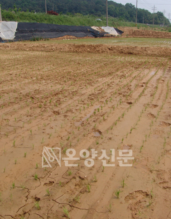 Áö³ 27ÀÏ 11½Ã°æ, (ÁÖ)½Å¿øÀº °øÀå ºÎÁö È®ÀåÀ» À§ÇØ µµ·Îº¯¿¡ ¿Ëº®À» Ä¡´Â °ø»ç¸¦ ÇÏ´Ù°¡ ÁöÇÏ¿¡ ¸Å¼³µÈ ³ó¾÷ ¿ë¼ö°üÀ» ÆÄ¼Õ½ÃÄÑ ³ó¾÷ ¿ë¼ö °ø±ÞÀÌ Áß´Ü µÆ´Ù. ÀÌ »ç°í·Î À̰÷À¸·Î ¹°À» °ø±Þ¹Þ¾Æ ³ó»ç¸¦ Áþ´Â ¼±Àå¸é Á׻긮 1¡¤2±¸ 100¿© °¡±¸ 61ÇíŸ ¸ù¸® Áö¿ª ³íÀÌ ¹°À» ¹ÞÁö ¸øÇØ ¸ð°¡ Ÿµé¾î °¡°í ÀÖ´Ù°í ÁֹεéÀÌ ¹ßÀ» ±¸¸£°í ÀÖ´Ù. ƯÈ÷ Áö³ÁÖ¿¡ ¸ð³»±âÇÑ ³íÀº ±ÝÁÖ¿¡ ¹°À» °ø±ÞÇÏ¿© ¸ð »Ñ¸®ÀÇ È°ÂøÀ» ³»¸®´Â ½Ã±â·Î Á¦¶§ ¹° °ø±ÞÀÌ ¾ÈµÇ¸é º »Ñ¸® ³»¸²ÀÌ ¾àÇØÁ® ¼Òµæ ÀúÇÏ·Î À̾îÁú ¼ö ÀÖ´Ù¸é¼ ºÒ¾È ÇØ Çϰí ÀÖ´Ù.