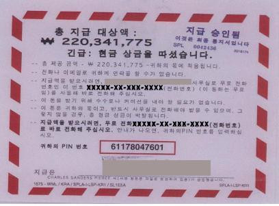 ¶Ç ¡°»ç¹«½Ç ¹«·á ÀüÈ ¡â¡â¡â¡â¡â-¡â¡â-¡â¡â¡â-¡â¡â¡â¡â·Î ÀüÈÇØ¾ß ¹ÞÀ» ¼ö ÀÖÀ¸¸ç, ±×·¸Áö ¾ÊÀ» °æ¿ì, ÃÑ Çö±Ý »ó±ÝÀÌ ¹ÚÅ»µË´Ï´Ù¡±¶ó°í ¾²¿© ÀÖ¾î ¿±¼¸¦ ¹ÞÀº »ç¶÷ÀÌ Àüȸ¦ °Éµµ·Ï À¯µµÇϰí ÀÖ´Ù.