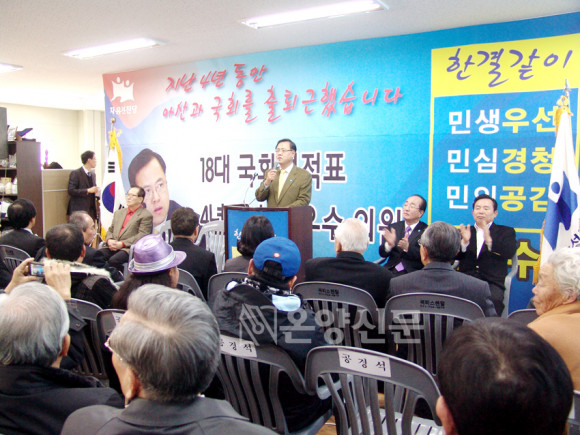 | | ¨Ï ¿Â¾ç½Å¹® | | ³»³â 4¿ù ÃѼ±¿¡ ³ª¼´Â À̸í¼ö ÀÇ¿øÀÌ »ç¹«½ÇÀ» °³¼ÒÇÏ¸é¼ ÇѲ¯ ¼¼¸¦ ¿Ã·È´Ù. 80¿©ÆòÀÇ ¿îµ¿Àå(?) »ç¹«½ÇÀÌ ÁöÁöÀÚ¿Í ÃàÇϰ´µé·Î ²Ë µé¾îÂ÷°í ½É´ëÆò ´ëÇ¥¸¦ ºñ·ÔÇÏ¿© ±è³«¼º, ÀÌÀÎÁ¦ ±¹È¸ÀÇ¿øÀÌ Âü¼® ÇØ ¡®¼º½ÇÇÑ ÀÇ¿ø¡¯À» °Á¶Çß´Ù.