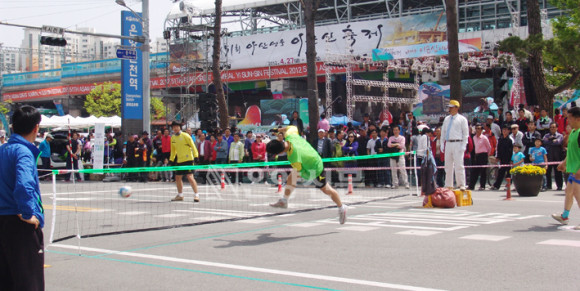 ƯÈ÷ À̺¥Æ® °æ±â·Î Á·±¸ °øÀ» ¹ß·Î Â÷¼ ¹Ý´ë Æí ÄÚÆ®¿¡ ³õÀÎ ¾Æ»ê¸¼Àº½ÒÀ» ¸ÂÃß´Â °æ±â¸¦ ÀϹݽùεéÀÌ Âü¿©ÇÏ´Â Á·±¸Ã¼Çè°ú ÇÔ²² ºÎ»óÀ¸·Î ¸ÂÃá ½ÒÀ» °æÇ°À¸·Î ÁõÁ¤Çß´Ù.