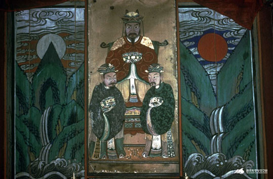 ¼¿ï ¸¶Æ÷±¸ ½Å¼öµ¿¿¡ ÀÖ¾ú´ø ½Å´çÀÎ º¹°³´ç¿¡ ÀÖ´Â ¼¼Á¶´ë¿Õ ¿µÁ¤½Å. ¿µÁ¤Àº ¼¼Á¶°¡ °ï·æÆ÷¸¦ ÀÔ°í ¿ë»ó¿¡ ¾É¾ÒÀ¸¸ç, ¾ÕÀÇ Á¿쿡 ¹®¹«°üÀÌ ½ÃÀ§ÇÑ ¹«½ÅµµÀÇ ÇüŸ¦ ÃëÇϰí ÀÖ´Â ±º¿Õ½ÅÀÇ ¼º°ÝÀ» ¶í´Ù.