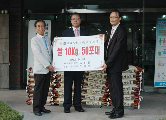 ÇÑÆí À̳¯ Àü´Þ½Ä¿¡´Â Çѱ¹°¨Á¤¿øÀÌ ÇÔ²² ÇßÀ¸¸ç, Áö¿ª°æÁ¦ »ì¸®±â Â÷¿ø¿¡¼ ¾Æ»ê½Ò 50Æ÷´ë(10kg µéÀÌ)¸¦ Àü´ÞÇß´Ù.