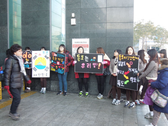 ¾Æ»ê½Ã °ü³» 4°³ °í±³(¿Â¾ç°í, ¿Â¾ç¿©°í, ¿Â¾çÇѿðí, ¿Â¾ç¿ëȰí) ÇлýµéÀÌ ÀÚ¹ßÀûÀ¸·Î ¸ð¿©¼ 'µ¶µµ´Â ´ëÇѹα¹ ¶¥ÀÔ´Ï´Ù'¶ó´Â ÁÖÁ¦·Î Ç÷¡½Ã¸÷À» ÆîÄ¡°í ÀÖ´Ù.