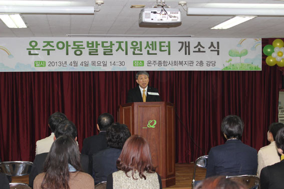 ¿ÂÁÖÁ¾ÇÕ»çȸº¹Áö°ü ½Å¹ü¼ö °üÀåÀº ¡°¿ÂÁ־Ƶ¿¹ß´ÞÁö¿ø¼¾ÅÍ °³¼Ò¸¦ ÇÔ²² ÃàÇÏÇØÁÖ±â À§ÇØ Âü¼®ÇØÁֽŠÁö¿ªÀÇ ¸¹Àº ³»ºóµé¿¡°Ô °¨»çÀλ縦 µå¸°´Ù.¡±¸ç ¡°Àü¹®Àû¡¤ÅëÇÕÀû ¼ºñ½º ¿î¿µÀ¸·Î Áö¿ª ¾Æµ¿µéÀÇ °Ç°ÇÑ ¼ºÀå°ú ¹ß´ÞÀ» À§ÇØ Èû¾²°Ú´Ù.¡±°í ¹àÇû´Ù.