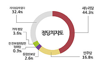 | | | ¡è¡è Á¤´ç ÁöÁöµµ | ¨Ï ¿Â¾ç½Å¹® | | ÀÌ¿Í ÇÔ²² Á¶»çÇÑ Á¤´çÁöÁöµµ¿¡¼´Â »õ´©¸®´ç 44.3%, ¹ÎÁÖ´ç 16.8%, ÅëÇÕÁøº¸´ç 2.6%, Á¤ÀÇ´ç 0.3% µîÀÇ ÀÀ´äÀÌ ³ª¿Ô´Ù. ±âŸ Á¤´çÀº 3.6%, Àß ¸ð¸§(¹«´çÃþ)Àº 32.4%¿´´Ù. Á÷Àü Á¶»ç¿Í ºñ±³ÇÒ ¶§ »õ´©¸®´çÀº 3.1% Æ÷ÀÎÆ® »ó½Â, ¹ÎÁÖ´çÀº 2.6% Æ÷ÀÎÆ® Ç϶ôÇÑ °ÍÀÌ´Ù.