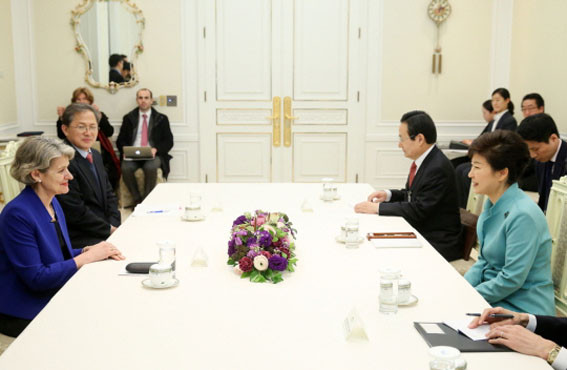 | | ¨Ï ¿Â¾ç½Å¹® | | ¹Ú±ÙÇý ´ëÅë·ÉÀº Áö³ 2¿ù 4ÀÏ À̸®³ª º¸ÄÚ¹Ù(Irina Bokova) À¯³×½ºÄÚ »ç¹«ÃÑÀåÀ» Á¢°ßÇϰí, 2015³â¿¡ °³ÃÖµÉ ¼¼°è±³À°Æ÷·³°ú ¼¼°è¹°Æ÷·³ÀÇ ¼º°øÀû °³ÃÖ ¹× Á¦ÁÖ ÇØ³à, À̻갡Á·Ã£±â ±â·Ï¹° µîÀÇ ¼¼°è¹®ÈÀ¯»ê µîÀç °ü·Ã Çù·Â°ü°è¿¡ ´ëÇØ ÀǰßÀ» ±³È¯Çß´Ù.