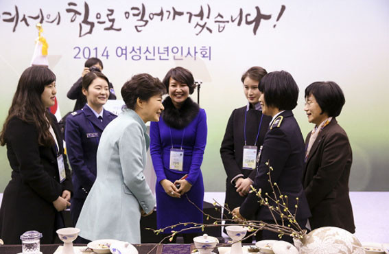 ¹Ú ´ëÅë·ÉÀº ¿©¼º°èÀÇ ³ë·ÂÀ¸·Î »çȸ °¢ ºÐ¾ß 1È£ ¿©¼ºµéÀÌ Åº»ýÇÒ ¼ö ÀÖ¾úÀ½À» °Ý·ÁÇϰí, 2014³âÀ» ÀÏ-°¡Á¤¾ç¸³ÀÇ ±âƲÀ» ¸¶·ÃÇÏ°í °æ·Â´ÜÀýÀÌ ¾ø´Â ³ª¶ó¸¦ ¸¸µå´Â ¿ø³âÀ¸·Î »ï°Ú´Ù´Â ÀÇÁö¸¦ Ç¥¸íÇϸç, ±× ±æ¿¡ ¿©¼º°èÀÇ ÁöÇý¿Í Çù·ÂÀ» ´çºÎÇß´Ù.