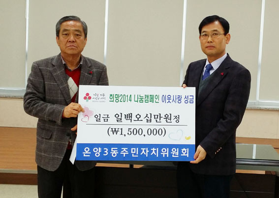 | | ¨Ï ¿Â¾ç½Å¹® | | ¿Â¾ç3µ¿ ÁÖ¹ÎÀÚÄ¡À§¿øÈ¸(À§¿øÀå ¼Û±â¼±)´Â ÀÚü ȸºñ¸¦ ¸ð¾Æ ¼º±Ý(150¸¸¿ø)À» ¸¶·ÃÇØ ¾î·Á¿î ÀÌ¿ô¿¡°Ô Á¶±ÝÀ̳ª¸¶ º¸ÅÆÀÌ µÇ°íÀÚ 12¿ù 20ÀÏ ¿Â¾ç3µ¿(µ¿Àå À¯¿ëÀÏ)¿¡ Àü´ÞÇß´Ù.