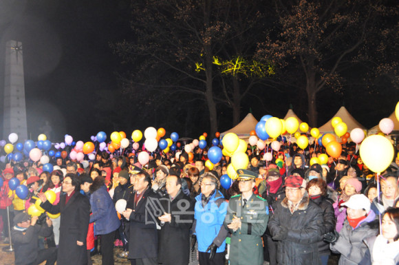 2014 °©¿À³â »õÇØ¸¦ ¸Â¾Æ 30¸¸ ½Ã¹ÎÀÇ °Ç°°ú ¾Æ»ê½Ã ¹ßÀüÀ» ±â¿øÇÏ´Â ¡®½Ã¹ÎÀÌ ÇູÇÑ ¾Æ»ê¡¯ ÇØ¸ÂÀÌ Çà»ç°¡ 1¿ù 1ÀÏ ³²»ê ¾Èº¸°ø¿ø(Ãæ¿Å¾)¿¡¼ ½Ã¹Î ¹× ±â°ü, ´ÜüÀåµéÀÌ Âü¼®ÇÑ °¡¿îµ¥ ¼ºÈ²¸®¿¡ °³ÃֵƴÙ.