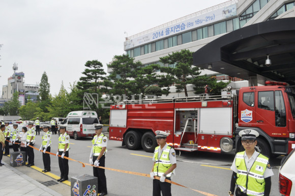 ÀÌ °úÁ¤¿¡¼ Áß¾Ó ¾ð·Ðµî ÃëÀçÁø ¼ö½Ê¸íÀÌ ¸ô·Á Àϰżö ÀÏÅõÁ·À» ÃëÀç ÇßÀ¸¸ç ¿ÀÈÄ ´Ê°Ô´Â º¸µµ¸¦ Á¢ÇÑ ½Ã¹ÎµéÀÌ ½ÃûÀ¸·Î ³ª¿Í »óȲÀ» ±Ù½É¾î¸° Ç¥Á¤À¸·Î ÁöÄѺôÙ.