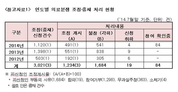 À̸í¼ö ÀÇ¿øÀº ¡°2012³â 4¿ù ÀÇ·áÁßÀç¿ø Ãâ¹ü ÀÌÈÄ 2014³â 7¿ù¸»±îÁö Àüü 3õ21°ÇÀÇ Á¶Á¤½Åû Áß ¾à 59%¿¡ ÇØ´çÇÏ´Â 1õ787°ÇÀÌ Á¶Á¤ Á¤Áö(°¢ÇÏ)µÆ°í, ÀÌ Áß °ÅÀÇ ´ëºÎºÐ¿¡ ÇØ´çÇÏ´Â 1õ684°ÇÀº ÇǽÅûÀÎ ºÎµ¿ÀÇ·Î °¢Çϵƴ١±¸é¼, ¡°ÇöÇàÁ¦µµ·Î´Â ½Å¼ÓÇÑ ºÐÀïÇØ°áÀ» ¹Ù¶ó´Â ȯÀڵ鿡°Ô Å« ºÒÆíÀ» ¾ß±âÇÒ »Ó ¾Æ´Ï¶ó ÀÇ·áºÐÀïÁ¶Á¤Á¦µµ Á¶±âÁ¤Âø¿¡ Àå¾Ö¿ä¼Ò·Î ÀÛ¿ëÇÒ °Í¡±À̶ó°í ÁöÀûÇß´Ù.
